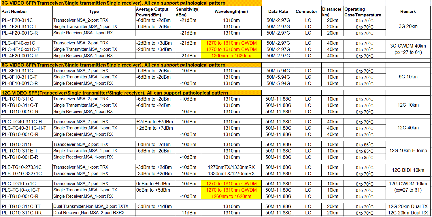 Ø Transmission distance with 9/125μm SMF up to 40km at 5.94G